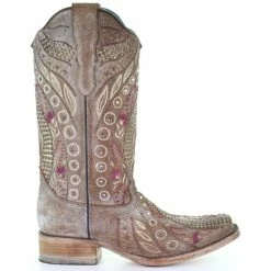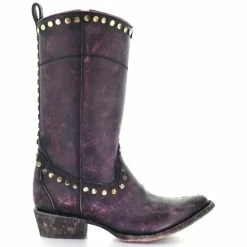 New π Corral π© Women’s Distressed Wine Zipper & Studs Western π₯Ύ Boots – Round Toe π