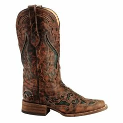 Flash Sale โ๏ธ Corral ๐ฉ Women’s Cognac & Olive Inlay Cowgirl ๐ฅพ Boots – Square Toe ๐คฉ