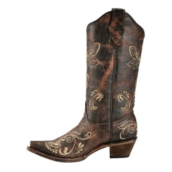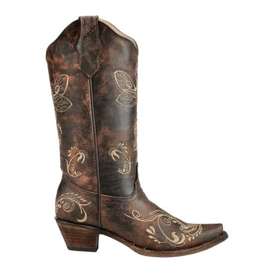 Coupon ✨ Circle G 👩 Women’s Distressed Bone Dragonfly Embroidered 🥾 Boots – Snip Toe Brown 👏