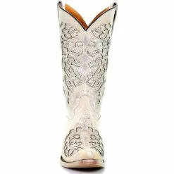 Cheapest π Corral π© Women’s Metallic Glitter Inlay & Crystal π₯Ύ Boots – Snip Toe White β¨