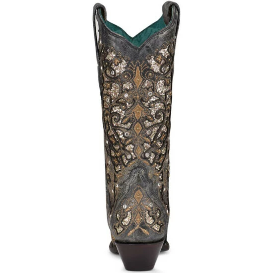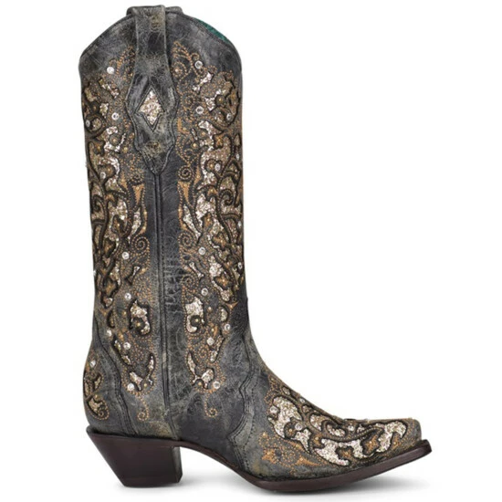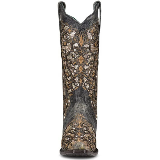 New ๐ Corral ๐ฉ Women’s Black Inlay & Studs Western ๐ฅพ Boots – Snip Toe โค๏ธ