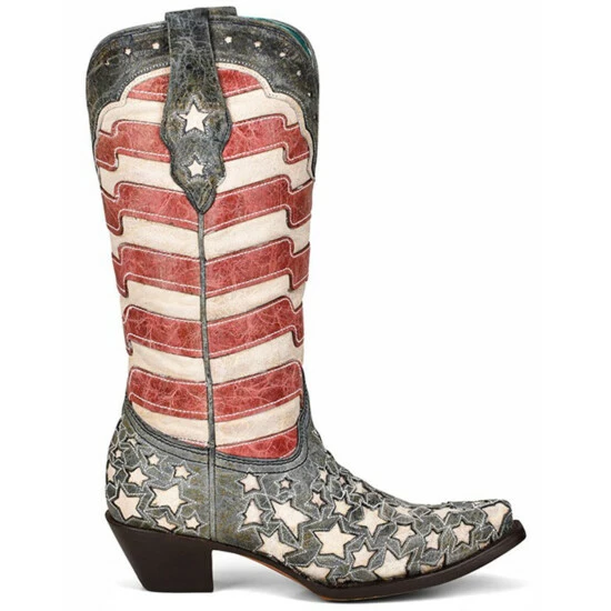 Cheapest 🎉 Corral 👩 Women’s Blue 👖 Jeans Stars & Stripes Western 🥾 Boots – Snip Toe 🤩