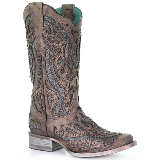 Outlet ⭐ Corral 👩 Women’s Brown Inlay & Flower Embroidery Western 🥾 Boots – Square Toe 🥰