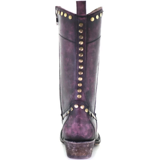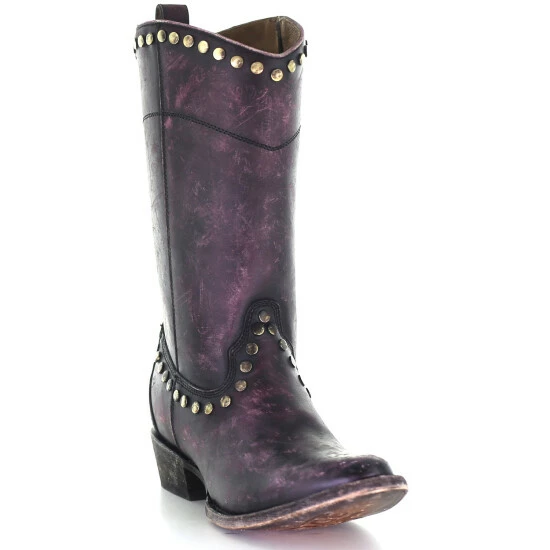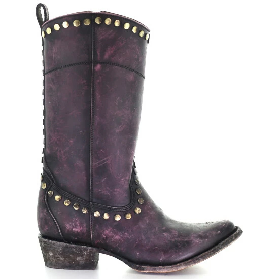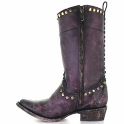 New ๐ Corral ๐ฉ Women’s Distressed Wine Zipper & Studs Western ๐ฅพ Boots – Round Toe ๐