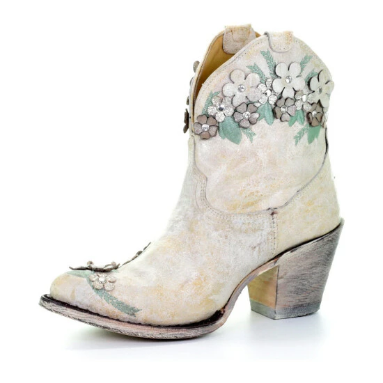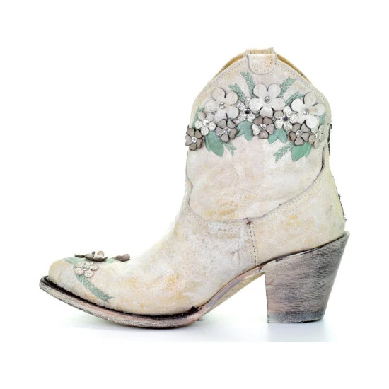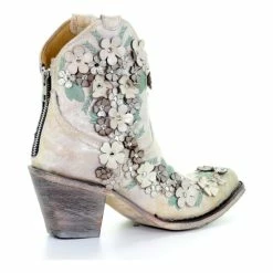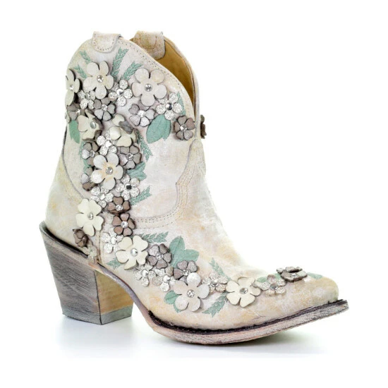 Hot Sale ๐ Corral ๐ฉ Women’s Floral Overlay Booties – Round Toe White โจ