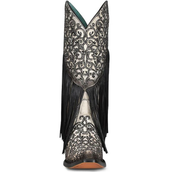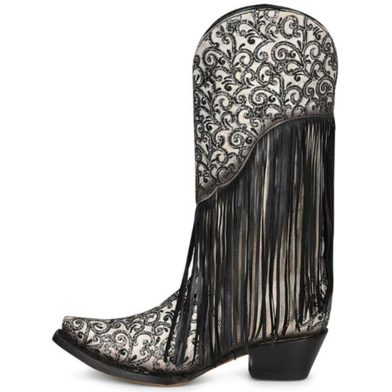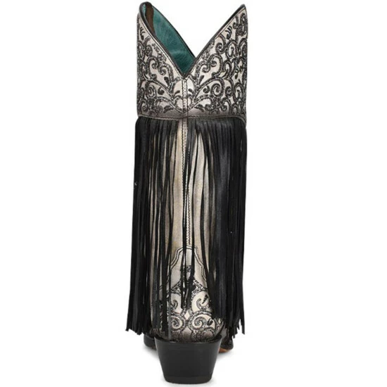 Outlet ⌛ Corral 👩 Women’s Glitter Fringe Western 🥾 Boots – Snip Toe Black/white 👏