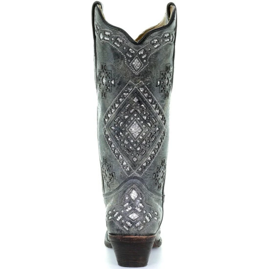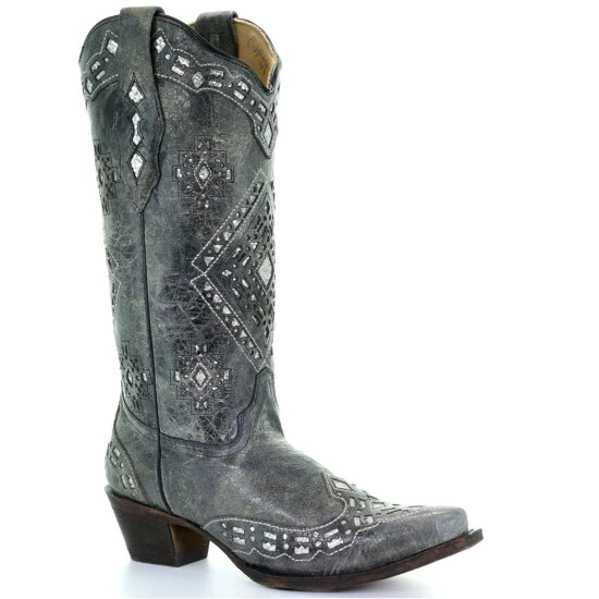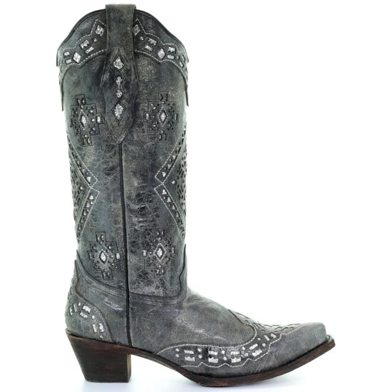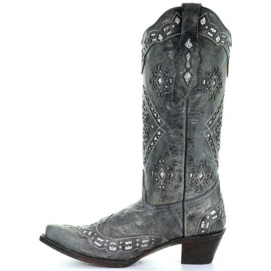 Cheapest 🤩 Corral 👩 Women’s Glitter Inlay Cowgirl 🥾 Boots – Snip Toe Black Distressed ❤️