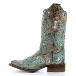 These stylish cowgirl boots will help you put your best foot forward! The Corral ladies’ boots are made of distressed leather with turquoise glitter inlay and contrast stitching. Corral Boots are designed for today’s fashionable cowgirl who knows that all she needs is her favorite cut-offs, a trusty dog by her side, and a great looking pair of boots!