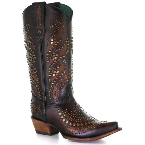 Cheapest ✔️ Corral 👩 Women’s Sequenced Studs Western 🥾 Boots – Snip Toe Brown 🛒