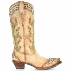 When it comes to blending feminine essence with western style, no one does it quite like Corral. These gorgeous boots feature premium leather construction with floral embroidery and overlays that trail around the collar, down the shaft and across the foot for a striking, multi-dimensional look. Rhinestone and stud accents, carefully placed, add a hint of sparkle. Pair with your favorite denim or dresses for a stunning cowgirl look everywhere you go.