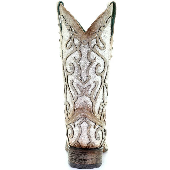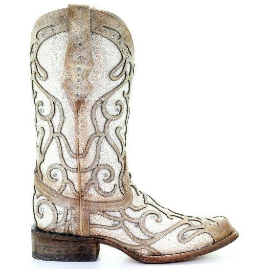 Outlet π Corral π© Women’s White Glitter Inlay Western π₯Ύ Boots – Square Toe Ivory π₯°